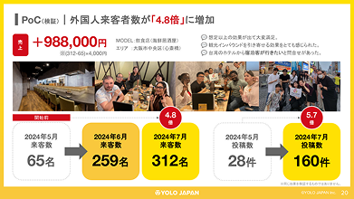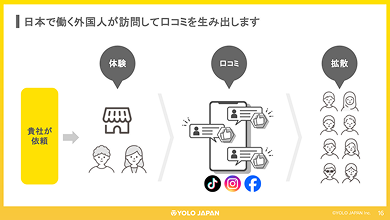 導入事例資料ダウンロードページ 「外国人行列ラボ」無料相談・資料ダウンロード フォーム送信後、サービス資料付きのメールが届きます。※以下一部資料抜粋。 © YOLO JAPAN CORPORATION.