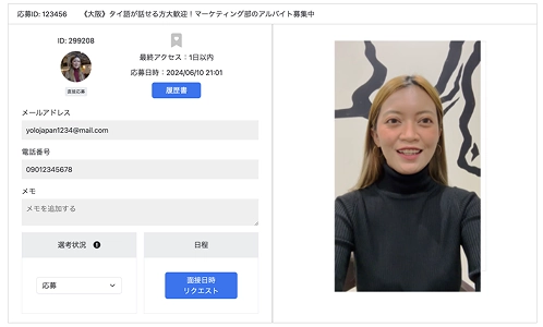 選考の前に外国人の人柄や日本語をどこまで話せるのか気になりませんか?ヨロワークでは、外国人が事前に撮影した自己紹介動画を面接前に確認することができます。日本語レベルや人柄を確認でき、魅力的な人材を選ぶことができます。
