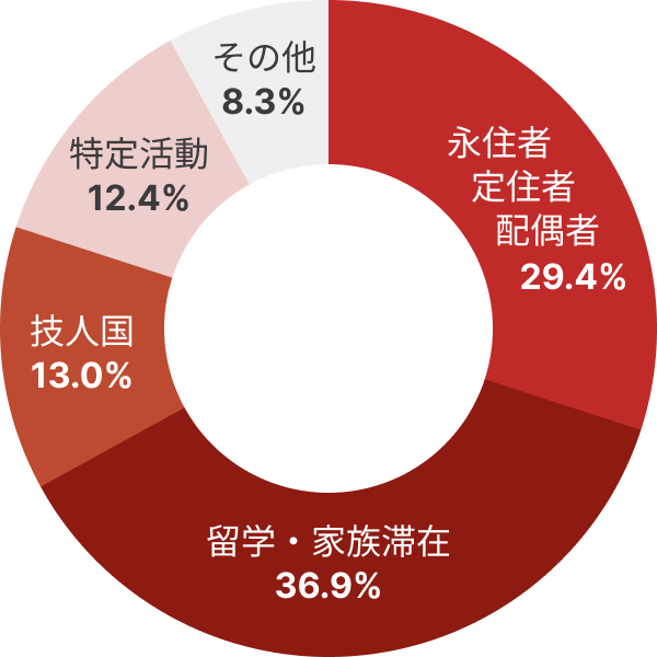 ヨロワークに登録している全ての外国人は、既に在留資格を取得して日本に住んでいるため、複雑な手続きが不要。さらに、職種制限がない登録者が多く、様々な業界や職種で採用が可能です。