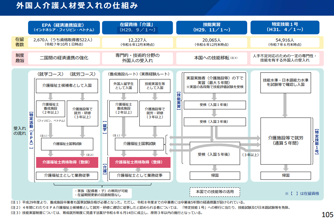 特定技能「介護」を含めると4つのルートがあります。