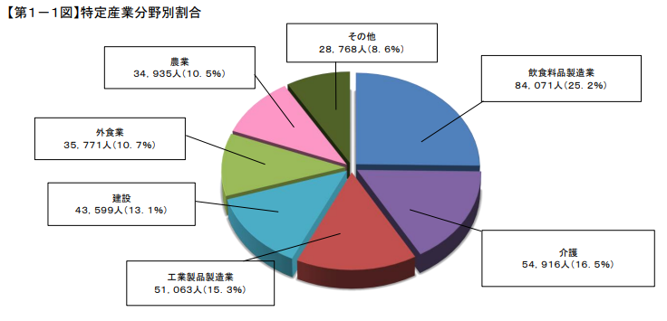 その他の16分野の特定技能と比べても「飲食料品製造業」が一番多く84,071人、次いで2番目に多いのが「介護」です。