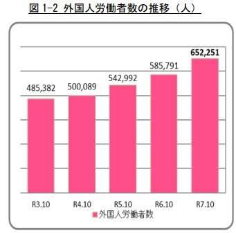 2025年10月末時点での東京都における外国人労働者数は652,251人に達し、前年比11.3%の増加を記録しています。