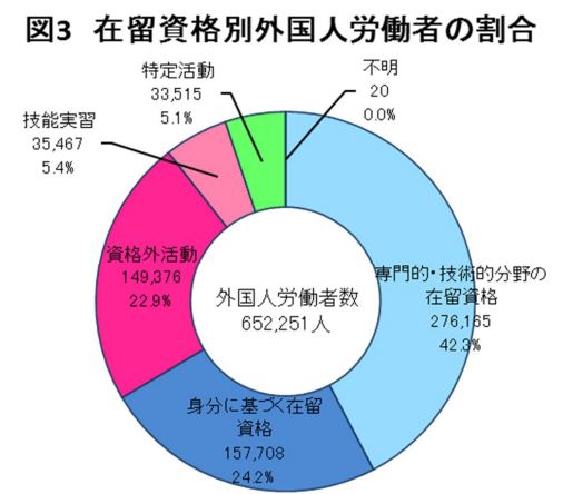 また、身分に基づく在留資格を持つ外国人も多く見られます。