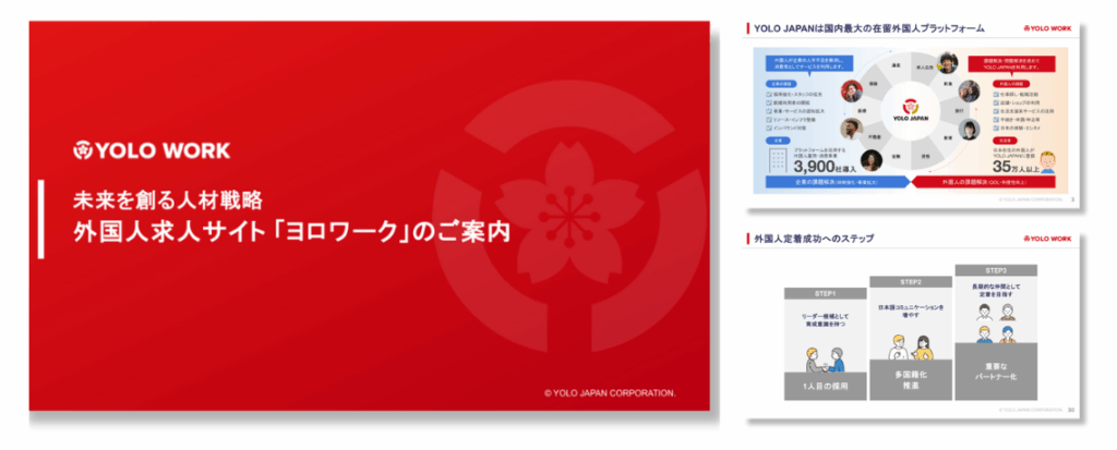 外国人求人掲載サービス「ヨロワーク」資料無料ダウンロード サービス内容のご確認、比較検討にご利用ください。 資料内容 外国人求人掲載サービスのヨロワークとは? 今後の日本の採用市場 外国人求職者の特徴 外国人の定着成功ステップ ヨロワーク導入実績 成果報酬型・掲載型プラン費用