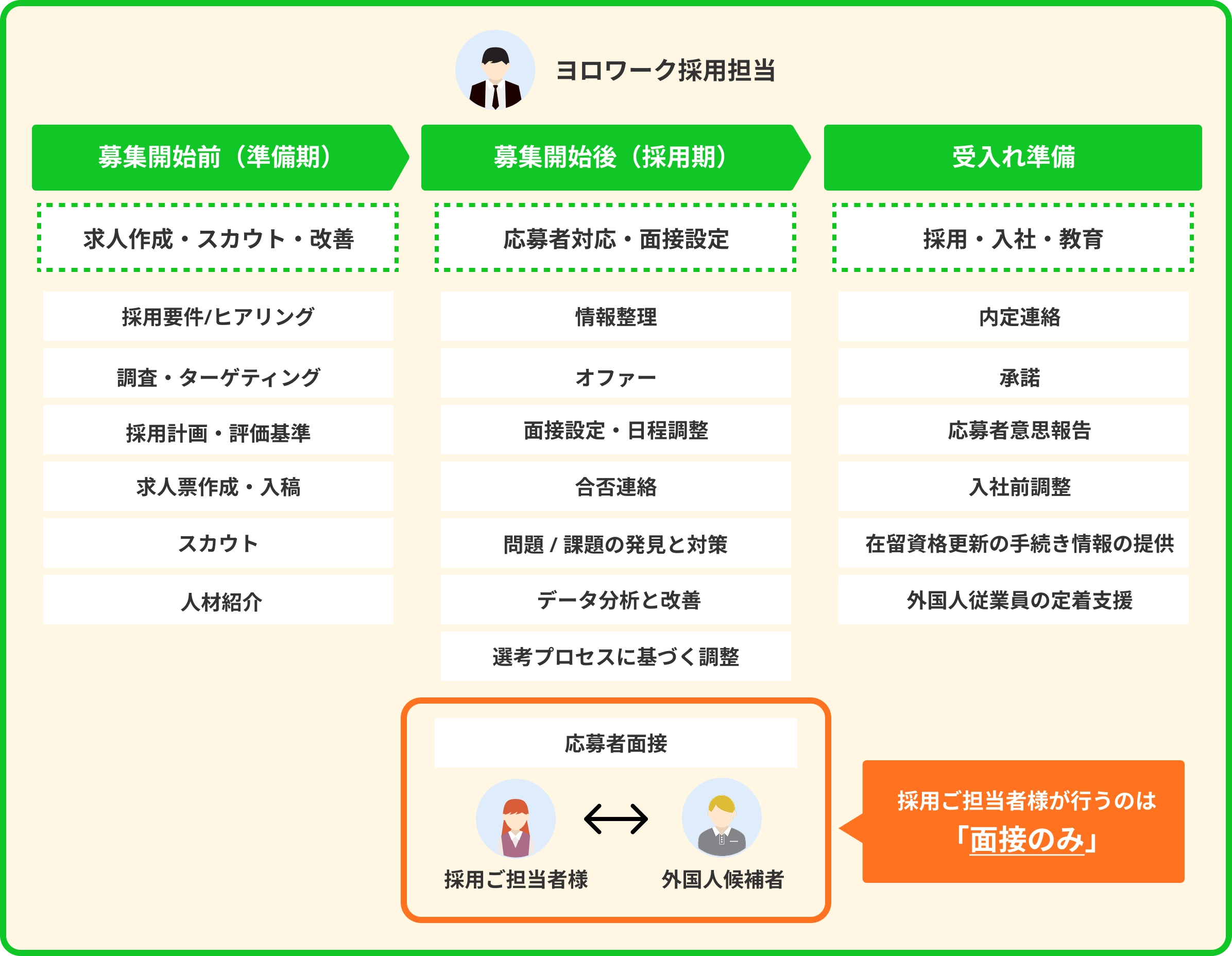 外国人採用となれば、さらに専門知識も必要となり、担当者の負担は増すばかりです。